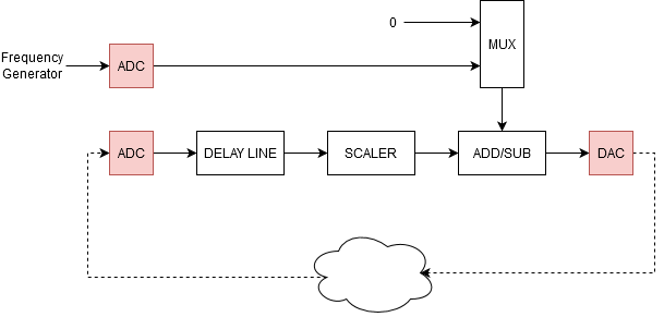This project implements the above feedback loop in FPGA logic. The components of the feedback loop are analysed below: