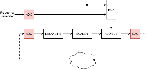 This project implements the above feedback loop in FPGA logic. The components of the feedback loop are analysed below: